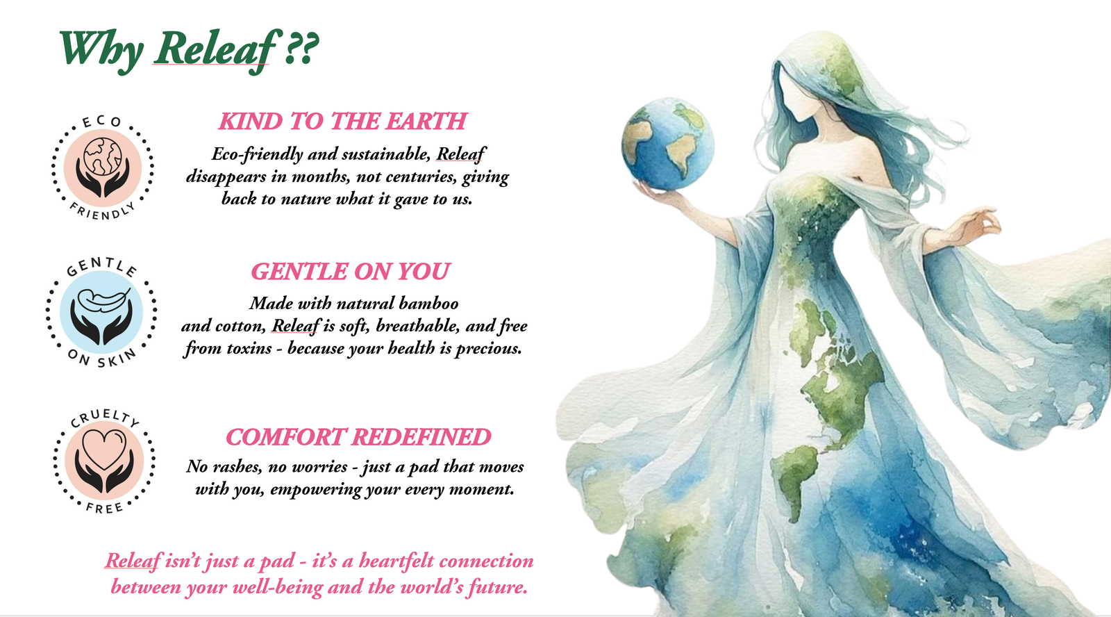 The primary purpose of the Parisara Samrakshana Foundation® is to support waste pickers and promote environmental sustainability. Your choice of pad impacts not just you, but the planet too! Switch to Releaf – for comfort, care, and a cleaner planet.