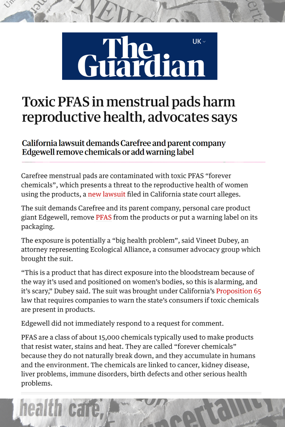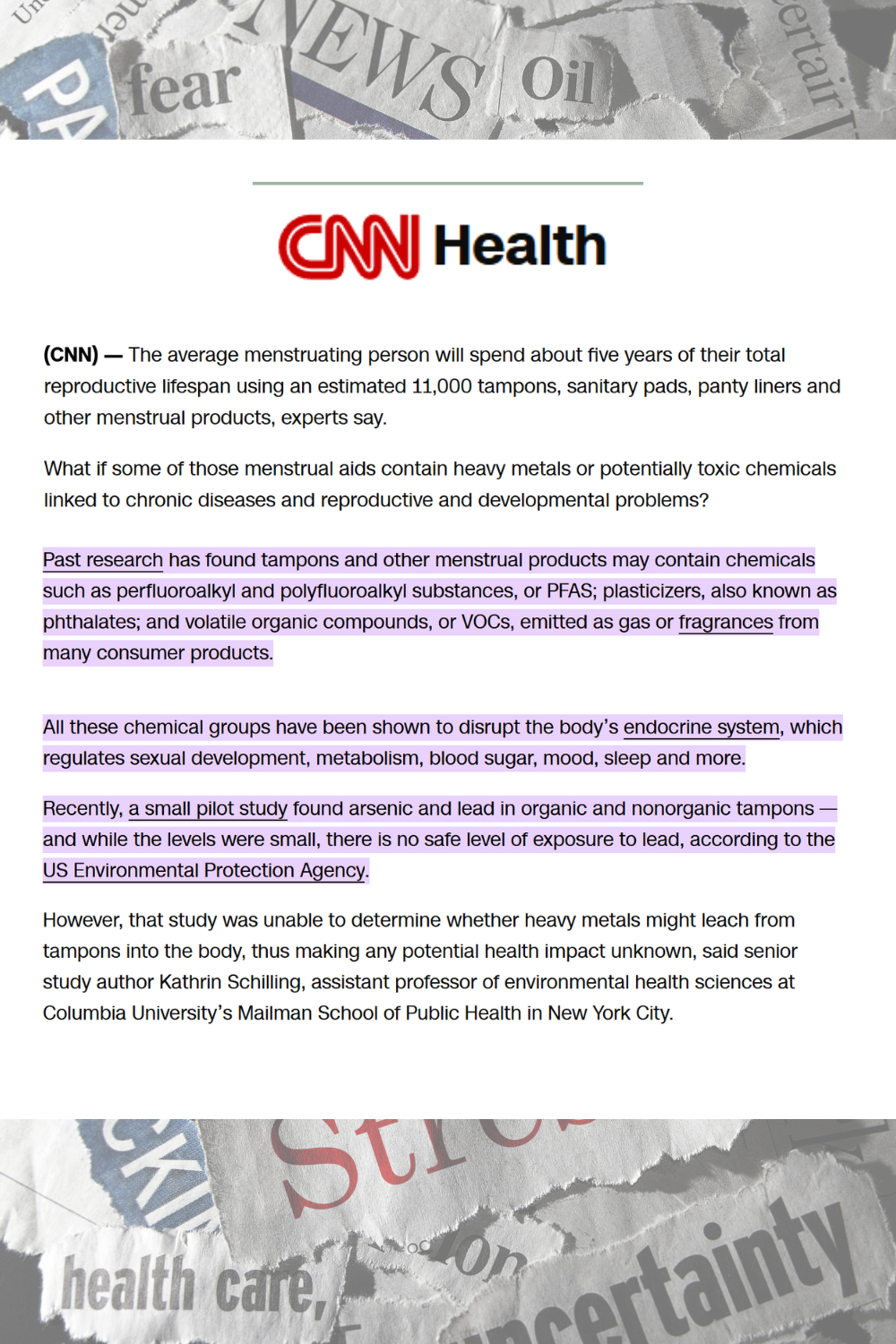 Because these products are worn for long hours in intimate contact with the body, concerns arise about potential exposure to chemicals such as dioxins, fragrances, and adhesives, which may cause irritation or long-term health risks. Despite these concerns, the lack of ingredient transparency remains a major issue.